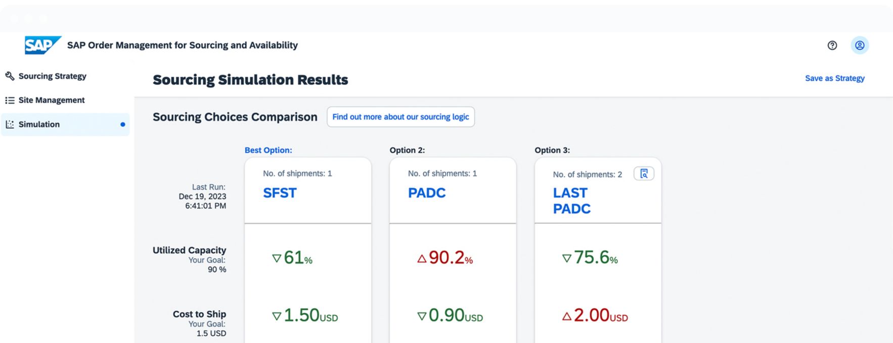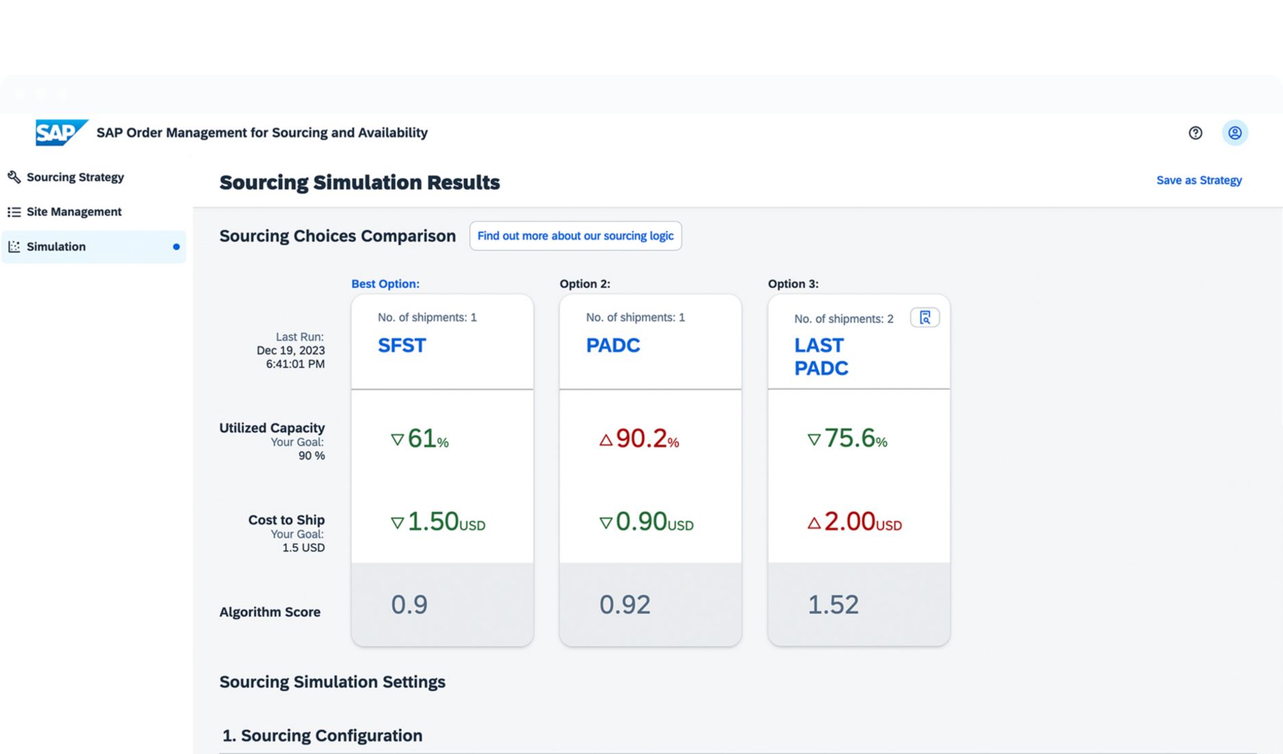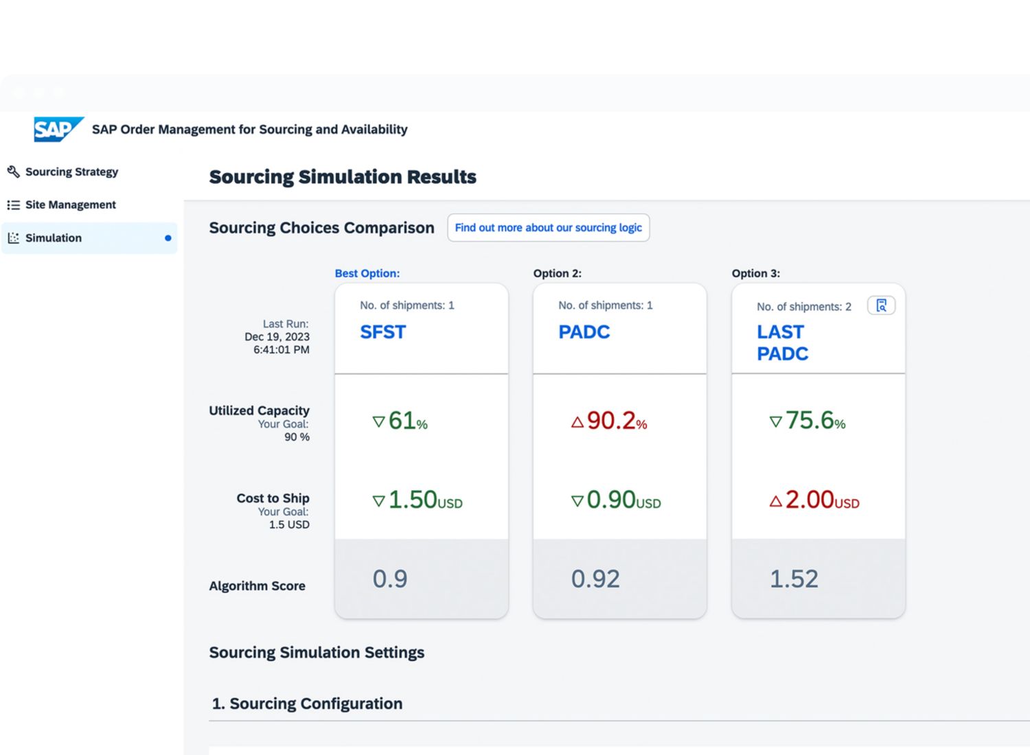• Optimise sourcing across multiple business goals simultaneously and simulate changes on historical data