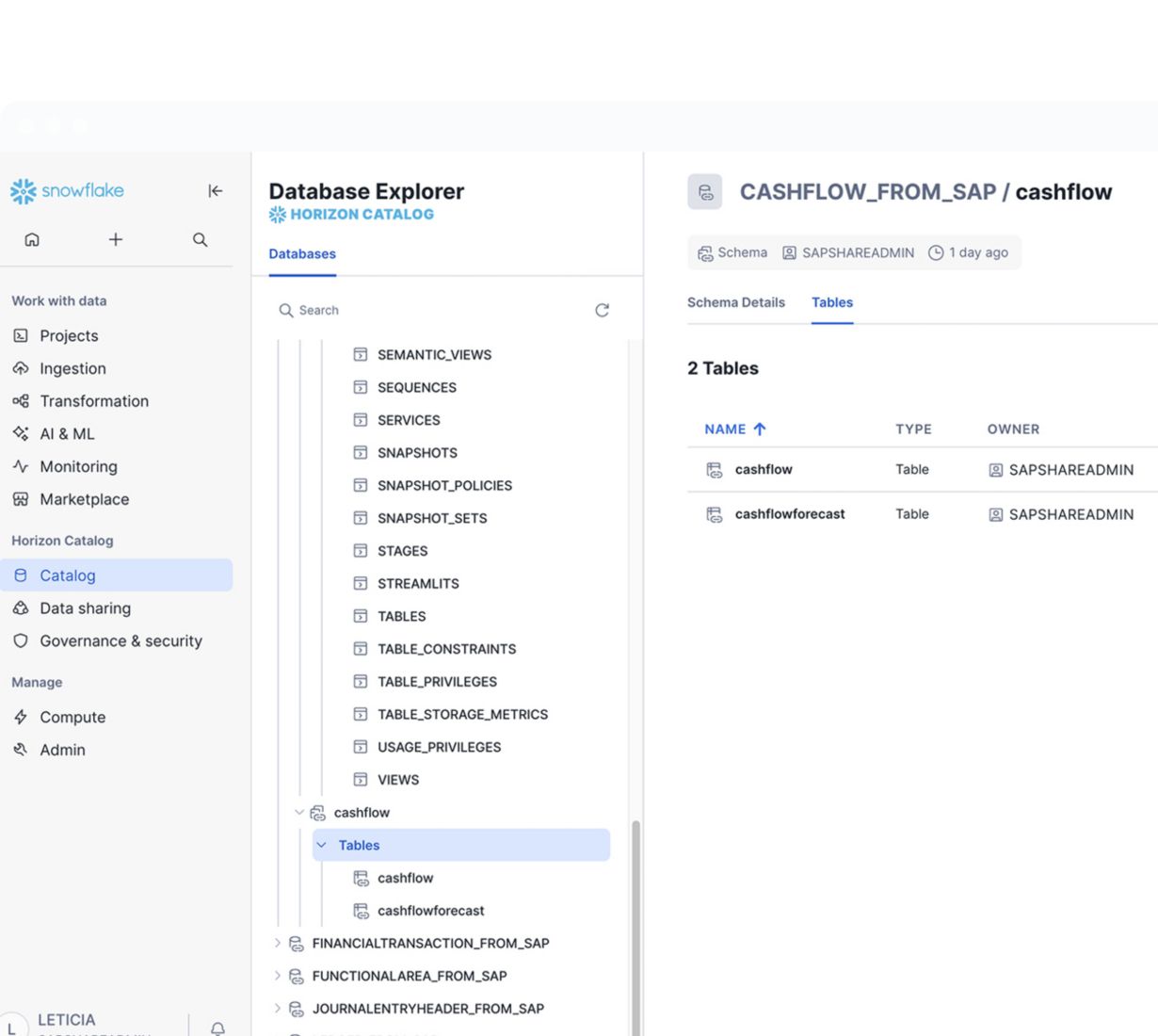 تنسيق بيانات SAP وSnowflake مع مشاركة النسخ الصفرية
