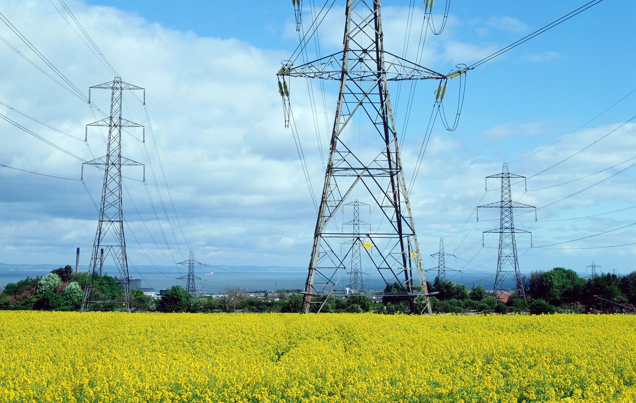 Power lines in meadow